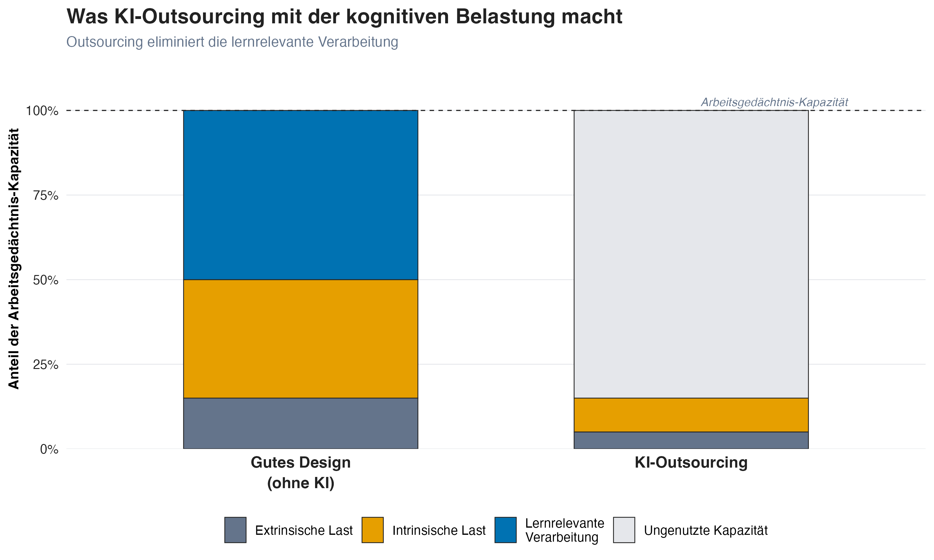 Lernrelevante Verarbeitung wird nur eliminiert, wenn KI die Denkarbeit übernimmt (Outsourcing).