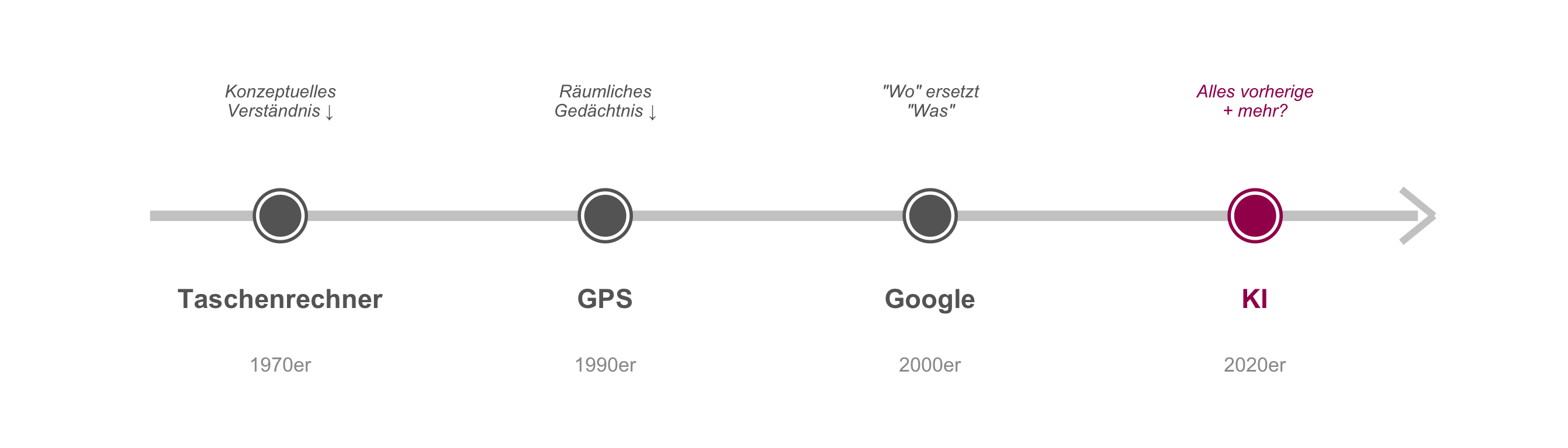 Das Muster wiederholt sich. Aber: KI ist breiter als GPS oder Taschenrechner.