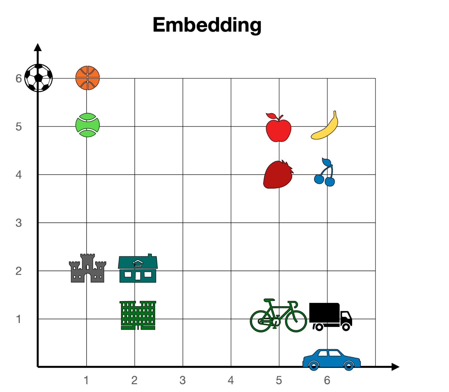 In this 2-dimensional representation, concepts that are “related” lie close together. Read about embeddings in this tutorial.