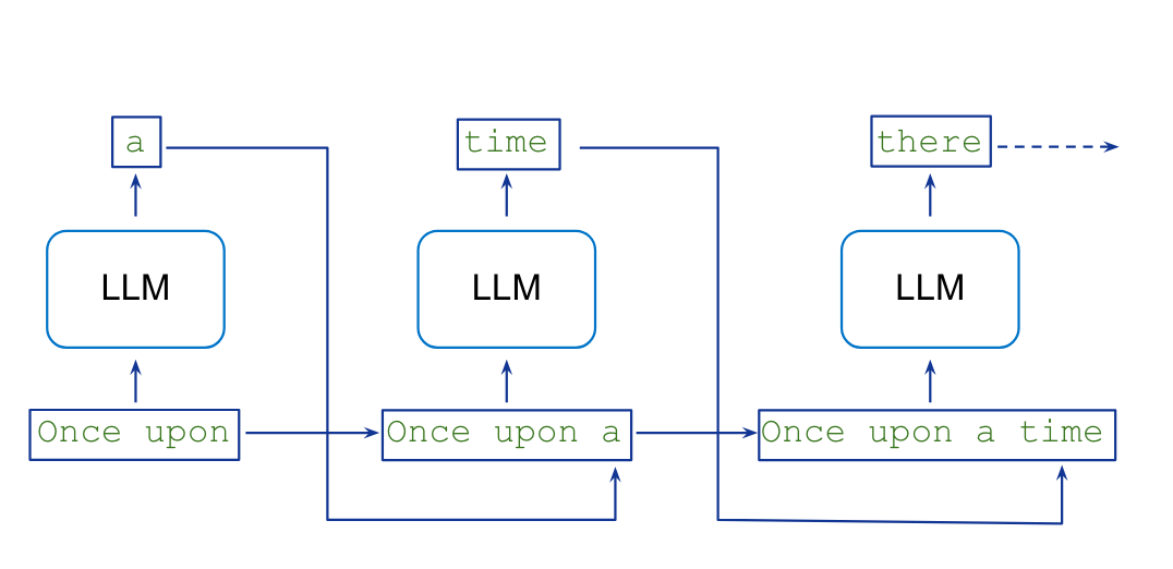 Text is generated one word at a time (actually tokens, not words).